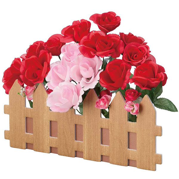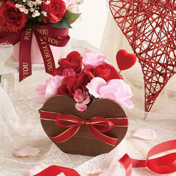 ハートやピンクのバラの造花が、ハッピーな気分を盛り上げてくれます。