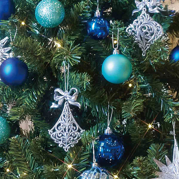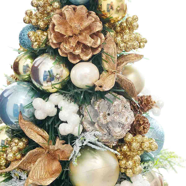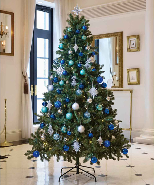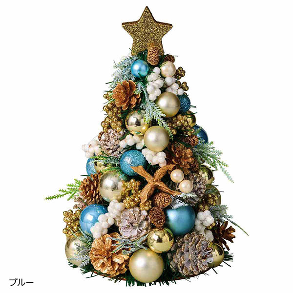 テーブルやカウンターに置きやすい、ブルーが鮮やかな卓上ミニツリー、2サイズ。 オーナメントが楽しいクリスマスを演出してくれます。