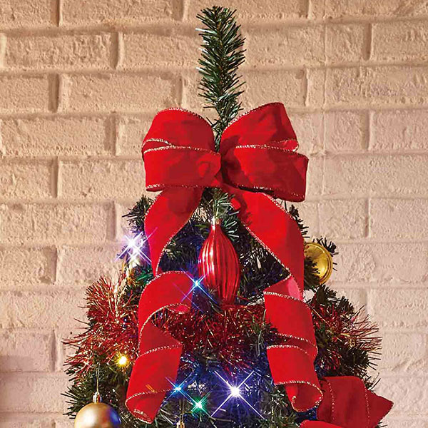 オーナメントとリボン付きの折りたたみツリー!折りたたみ式だから手間いらずで完成!