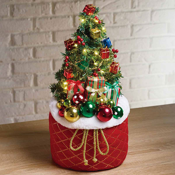 H21cmとミニサイズながらLEDライト付きで光る卓上ミニツリー。