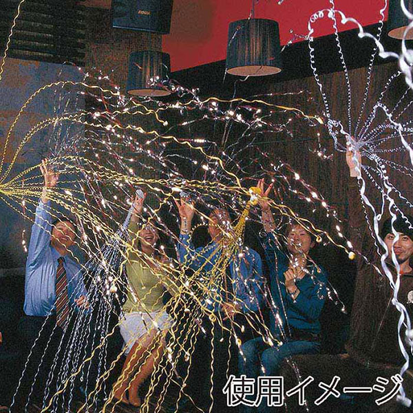 5色のメタルテープ100本が飛び出すド派手なクラッカーです。