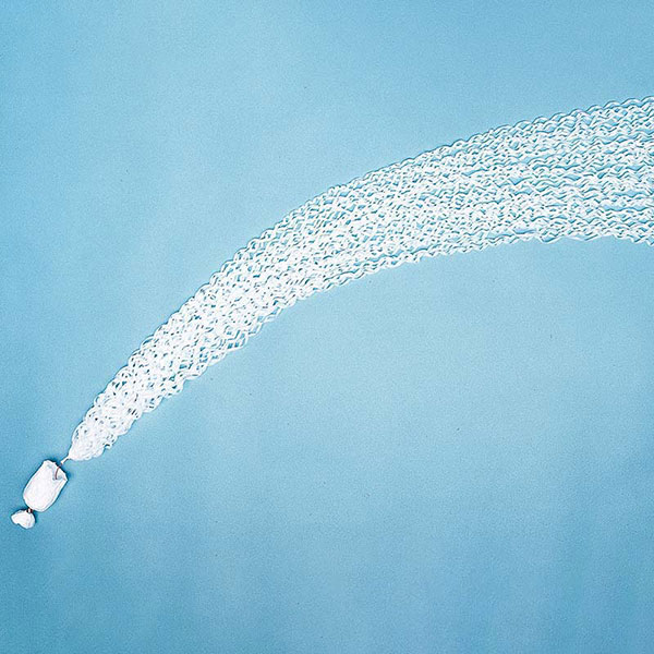 ストッパーを外して投げるだけで、約5mのカラフルなメタルテープがフワッとクモの巣状で宙に広がります。