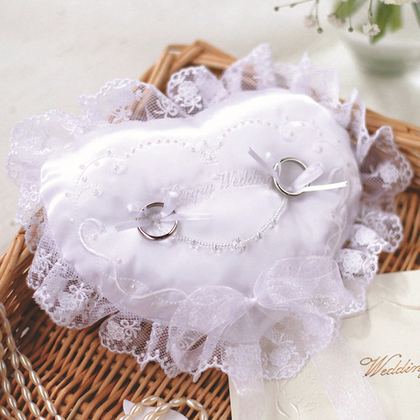レースやオーガンジーリボンをあしらったハート形リングピロー!