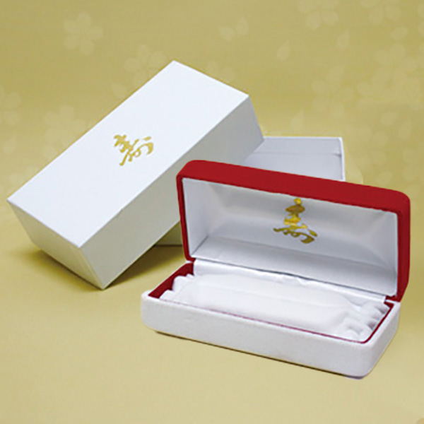 赤と白い色でおめでたい雰囲気の和風リングケース。