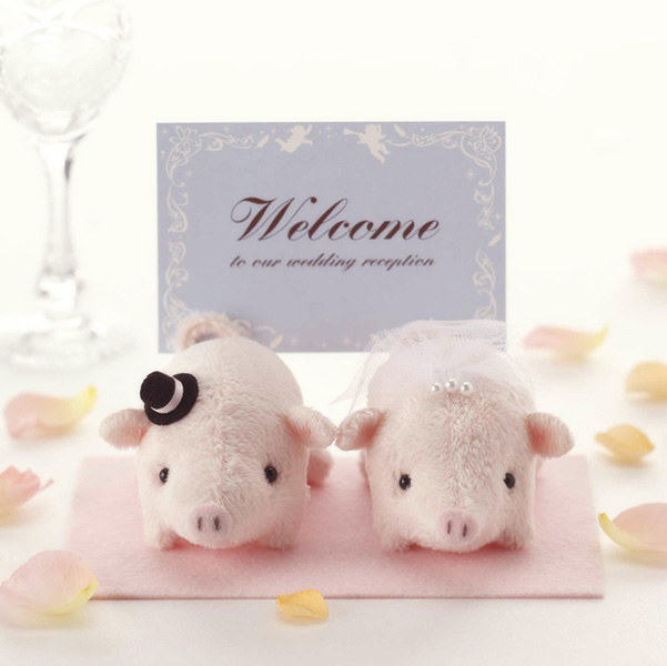 キュートな二匹の白い子ブタのウェルカムマスコットです。