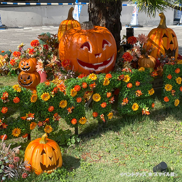 ハロウィンディスプレイを盛り上げるパンプキンオブジェ。
