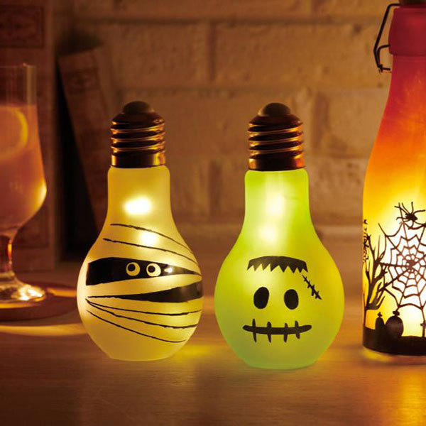 スイッチを入れるとライトが点灯!ハロウィンの雰囲気をグッと盛り上げます。