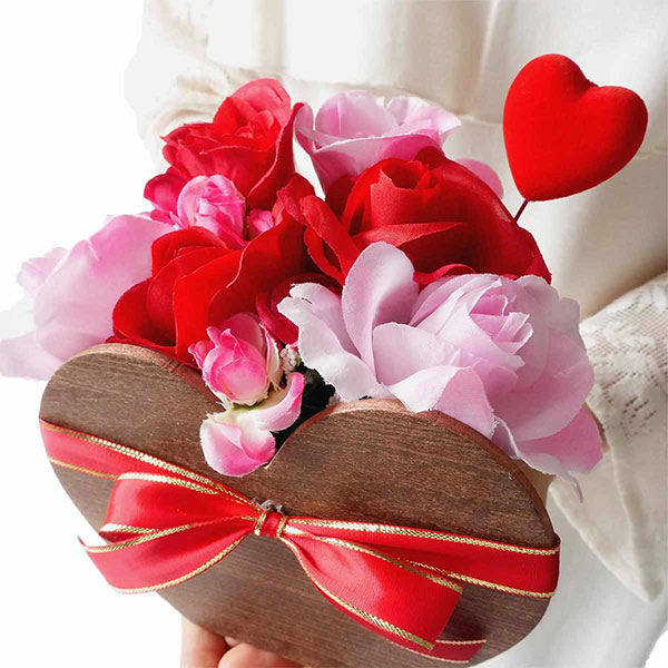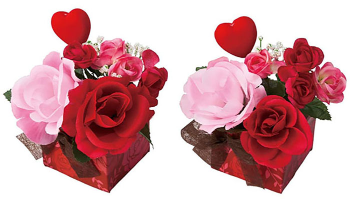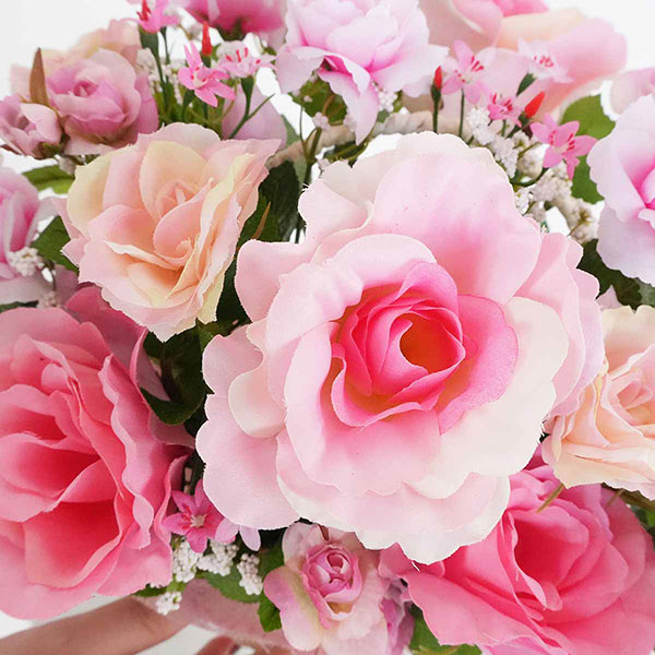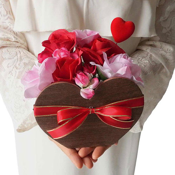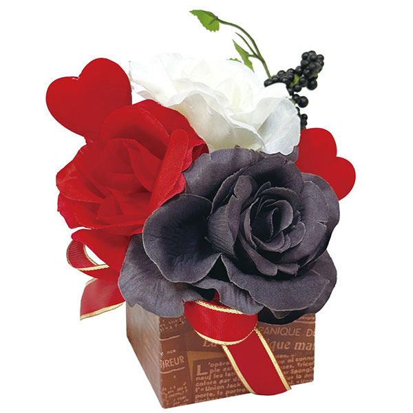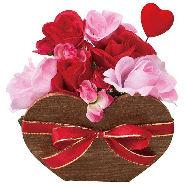 ハートやピンクのバラの造花が、ハッピーな気分を盛り上げてくれます。