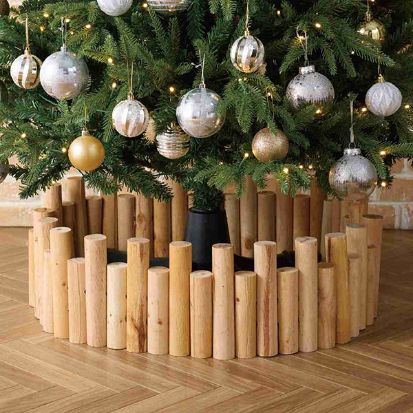 丸太が連なったような丸みのあるフェンスで、ツリーの足元をグッとかわいらしい印象に。