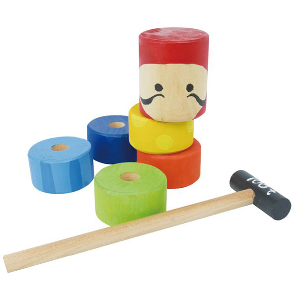 積み木を積んで、下の段から順番にハンマーで打って遊ぼう!