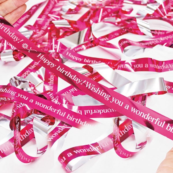 バースデーメッセージが印刷された可愛いメタルテープが飛び出す!