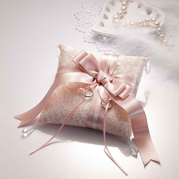 リングピローには様々なデザインがあり、結婚式のテーマや二人の好みに合わせて選びましょう。