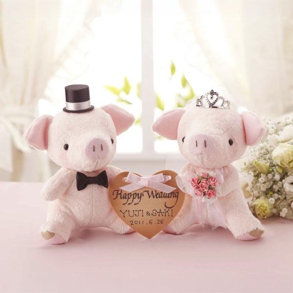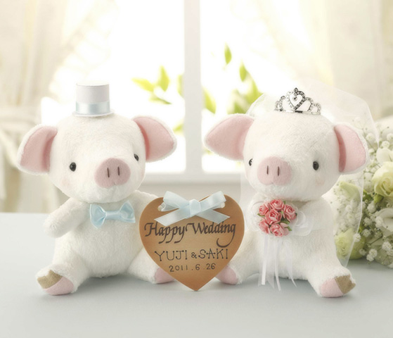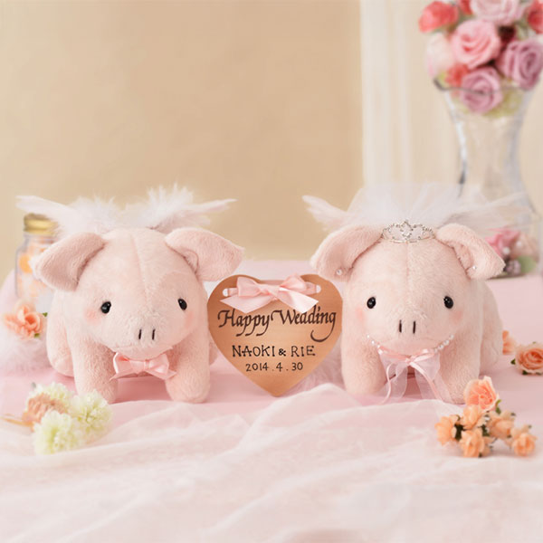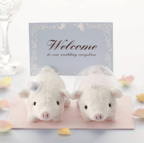 キュートな二匹の白い子ブタのウェルカムマスコットです。